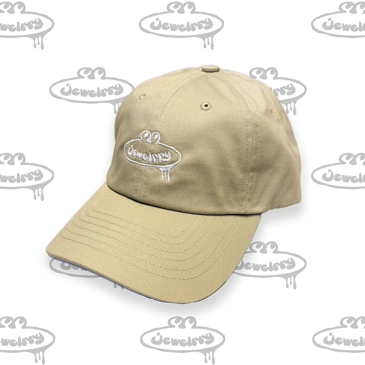 じゅえりーの手書きカエルロゴを刺繍したキャップ。